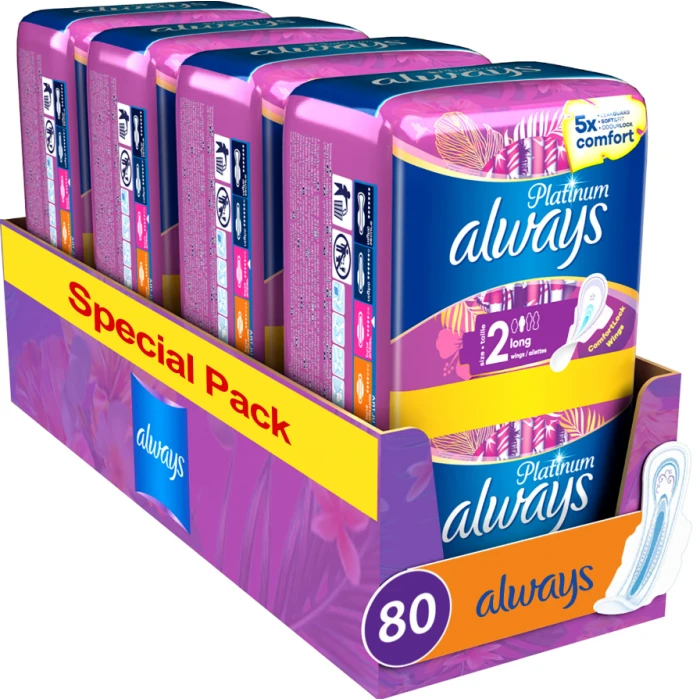 Οι σερβιέτες Always Platinum με φτερά ComfortLock είναι σχεδιασμένες για να σας προσφέρουν καλύτερη εφαρμογή*, με μηδενικές διαρροές, χωρίς μετακινήσεις και απόλυτη άνεση. Με τις σερβιέτες Always Platinum, η περίοδός σας είναι το τελευταίο πράγμα στο μυαλό σας.