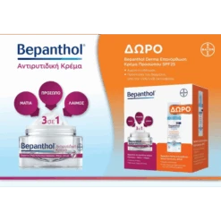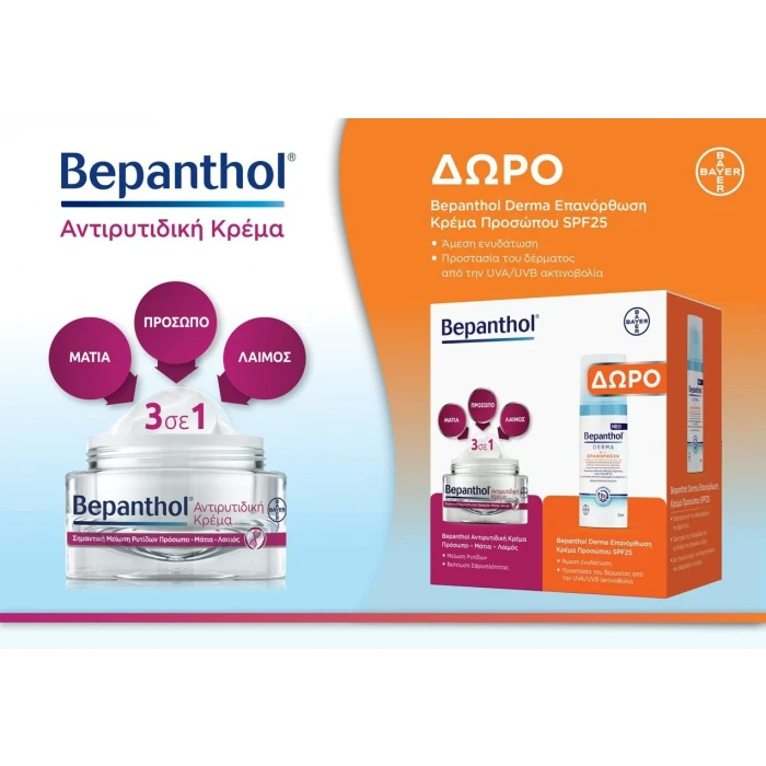 Πακέτο προσφοράς για περιποίηση του προσώπου από τη Bepanthol με αντιρυτιδική κρέμα για πρόσωπο, λαιμό και μάτια και ενυδατική κρέμα με SPF25.