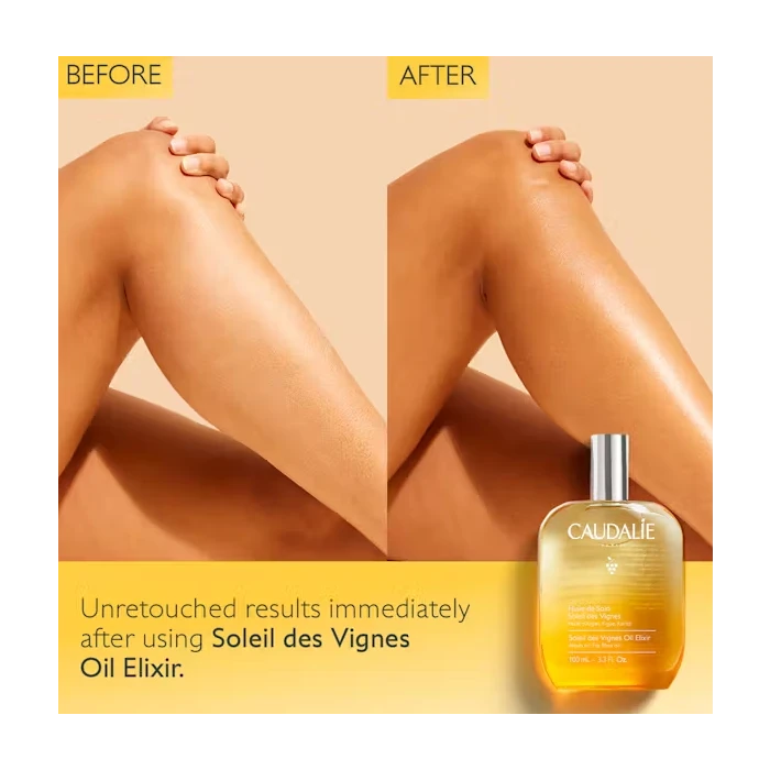 Ψεκάστε μερικές σταγόνες από το Soleil des Vignes Oil Elixir στην παλάμη του χεριού σας και κάντε απαλό μασάζ σε όλο το σώμα.