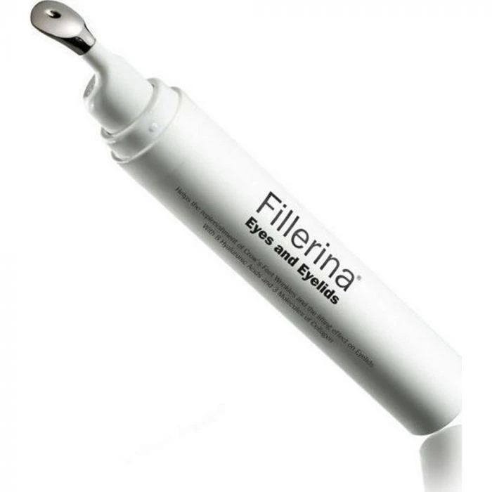 Η αγωγή Fillerina 12HA Αναπλήρωσης του δέρματος και Γεμίσματος των ρυτίδων για τα Mάτια και τα Bλέφαρα συνδυάζει 3 μόρια κολλαγόνου με διαφορετικά μοριακά βάρη τα οποία, εισχωρώντας έως τη δερμίδα (ex vivo έλεγχος με Franz Cells), προάγουν την αύξηση της πυκνότητας του εξωκυττάριου δικτύου και ενισχύουν τη δράση πλήρωσης και σύσφιξης συνεργικά με τα μόρια του Υαλουρονικού Οξέος. Λόγω της χρονολογικής γήρανσης μειώνεται επίσης η ποσότητα και η ποιότητα της Ελαστίνης, της δομικής πρωτεΐνης των ελαστικών ινών, το οποίο μειώνει την ελαστικότητα του δέρματος και συντελεί στη δερματική χαλάρωση.