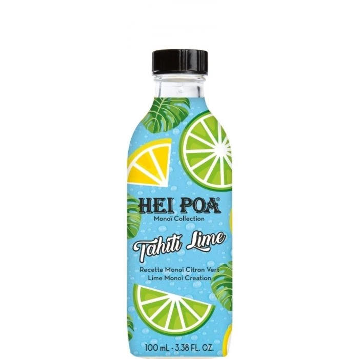 Το έλαιο περιποίησης σώματος, προσώπου και μαλλιών Hei Poa Monoi Oil Collection Tahiti Lime συνδυάζει τις ενυδατικές ιδιότητες του καλλυντικού λαδιού Monoi Tahiti της Γαλλικής Πολυνησίας με αρώματα από lime, από λουλούδια frangipani, και βανίλια.