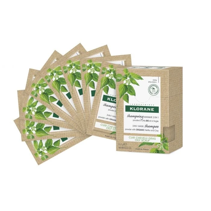 Το σμηγματορρυθμιστικό σαμπουάν μάσκα 2 σε 1 με εκχύλισμα βιολογικής Τσουκνίδας της KLORANE. Βιοδιασπώμενη σύνθεση, λιγότερο πλαστικό: