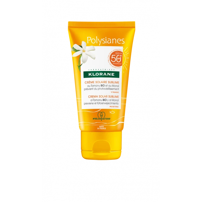 Η Klorane Αντηλιακή Κρέμα Polysianes Προσώπου με Tamanu και Monoi προσφέρει υψηλή αντηλιακή προστασία, θρέψη και προστατεύει από την φωτογήρανση. Χάρη στη μη λιπαρή της σύνθεση χαρίζει υγιή και λαμπερή όψη. Eπίσης, περιέχει ιριδίζουσες χρωστικές και απορροφητικές πούδρες.