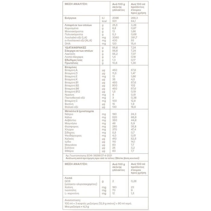 ΣΗΜΑΝΤΙΚΗ ΥΠΕΝΘΥΜΙΣΗ: Συμβουλευτείτε τον γιατρό σας πριν την έναρξη ή την εισαγωγή οποιασδήποτε νέας τροφής στο διαιτολόγιο του παιδιού σας. Το προϊόν δεν θα πρέπει να χρησιμοποιείται ως υποκατάστατο του μητρικού γάλακτος κατά τους έξι πρώτους μήνες της ζωής του βρέφους. Το μητρικό γάλα είναι η ιδανική τροφή για τα βρέφη και ο μητρικός θηλασμός πρέπει να συνεχίζεται όσο το δυνατόν περισσότερο.