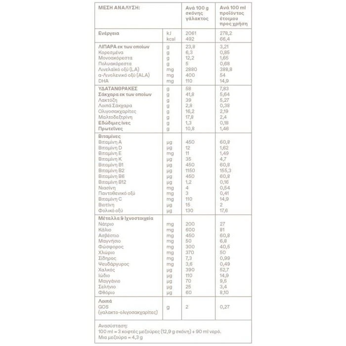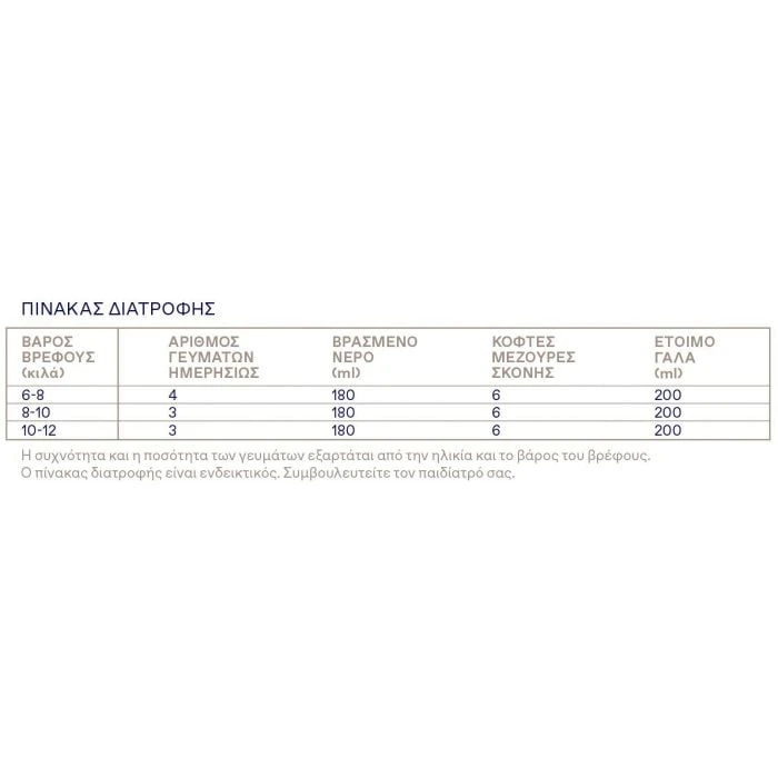 ΣΗΜΑΝΤΙΚΗ ΥΠΕΝΘΥΜΙΣΗ: Συμβουλευτείτε τον γιατρό σας πριν την έναρξη ή την εισαγωγή οποιασδήποτε νέας τροφής στο διαιτολόγιο του παιδιού σας. Το προϊόν δεν θα πρέπει να χρησιμοποιείται ως υποκατάστατο του μητρικού γάλακτος κατά τους έξι πρώτους μήνες της ζωής του βρέφους. Το μητρικό γάλα είναι η ιδανική τροφή για τα βρέφη και ο μητρικός θηλασμός πρέπει να συνεχίζεται όσο το δυνατόν περισσότερο.