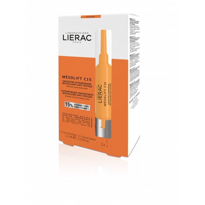 Εμπνευσμένο από την αισθητική τεχνική της μεσοθεραπείας, το συμπύκνωμα MÉSOLIFT C15 είναι μια καθημερινή ρουτίνα, η οποία προτείνεται ως θεραπεία σε περιόδους έντονου στρες, κούρασης ή εποχιακών αλλαγών. Είναι ο κατάλληλος τρόπος να καταπολεμήσετε την κούραση της επιδερμίδας.