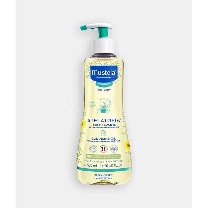 Το προϊόν Mustela Bébé Stelatopia καθαρίζει απαλά το δέρμα του μωρού και παρέχει την απαραίτητη θρέψη.