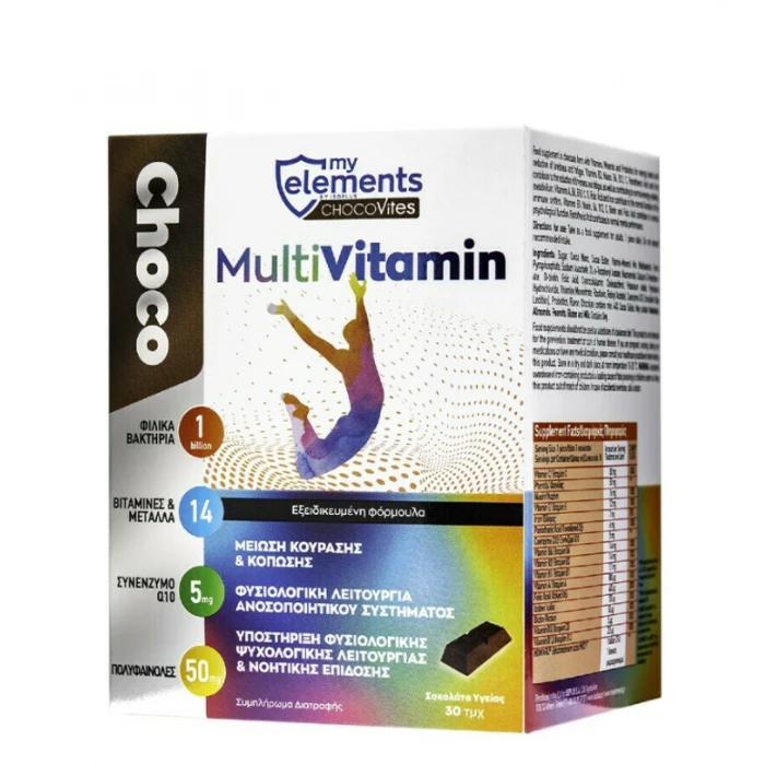 To Chocovites MultiVitamin της myelements είναι μια πολυβιταμίνη σε μορφή σοκολάτας, σχεδιασμένη να παρέχει ενέργεια και τόνωση στον οργανισμό.