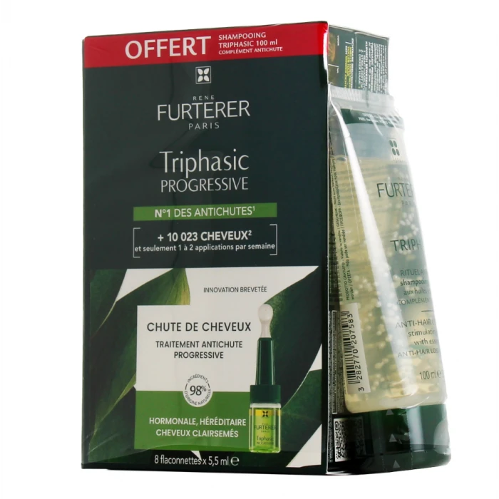- Σχεδιασμένο σε πρακτική ανακυκλωμένη και ανακυκλώσιμη μορφή μίας δόσης με ρύγχος ειδικό για μασάζ, το TRIPHASIC PROGRESSIVE μπορεί να χρησιμοποιηθεί μετά το λούσιμο ως αγωγή 3 μηνών. Δερματολογικά ελεγμένο, είναι επίσης κατάλληλο για το ευαίσθητο τριχωτό της κεφαλής.