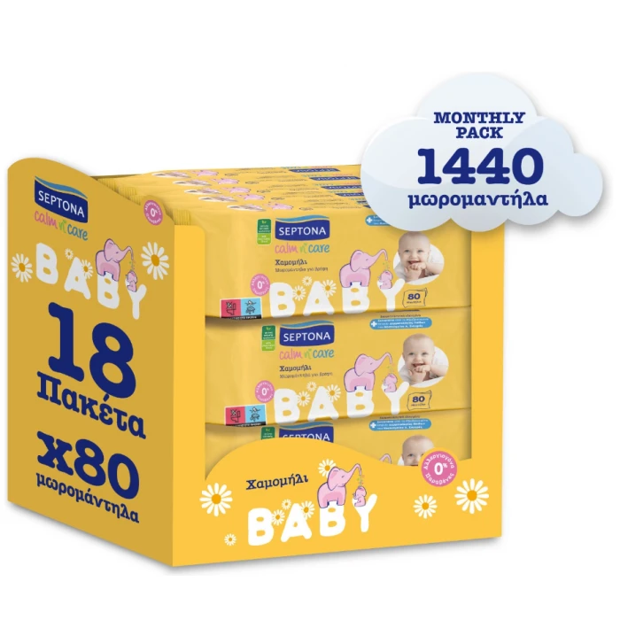Το δέρμα του μωρού σας είναι δείκτης της υγείας του. Τα απαλά μωρομάντηλα SEPTONA calm n’ care χαμομήλι είναι ιδανικά για την καθημερινή περιποίηση της ευαίσθητης βρεφικής επιδερμίδας από την 1η μέρα.