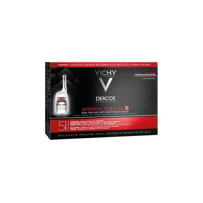 Το AMINEXIL CLINICAL 5 είναι η νέα αγωγή «πολλαπλής στόχευσης» κατά της τριχόπτωσης σε μονοδόσεις από τη Vichy. Εξασφαλίζει άμεση αποτελεσματικότητα χάρη στο νέο πεδίο δράσης του στο τριχωτό της κεφαλής και σε έναν αποκλειστικό συνδυασμό ενεργών συστατικών με 5 κρίσιμους παράγοντες.