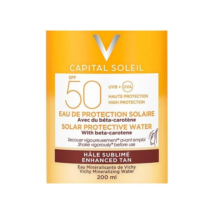 Με Διφασική τεχνολογία και με Ιαματικό Μεταλλικό Νερό της Vichy. Με Σύστημα Φίλτρων ευρέως φάσματος και Ισχυρά φυσικά δραστικά συστατικά όπως το Βήτα Καροτένιο για ενισχυμένο μαύρισμα