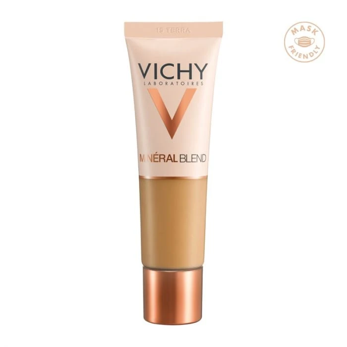 – Με Mineral (Μεταλλικές) χρωστικές, Ιαματικό νερό της Vichy και Υαλουρονικό Οξύ φυσικής προέλευσης.
