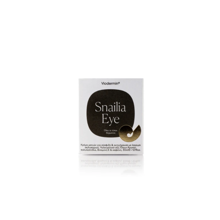 Κρέμα ματιών Viodermin Snailia με πλούσια σύνθεση, που μειώνει τα σημάδια γήρανσης στην περιοχή των ματιών, όπως λεπτές γραμμές, ρυτίδες, πρηξίματα, ξηρότητα, καθώς και τον ανομοιόμορφο χρωματικό τόνο.